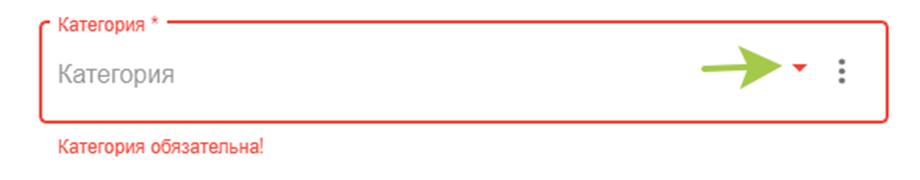 Далее в поле категория нажимаем на стрелочку, чтобы выбрать из списка нужную категорию.