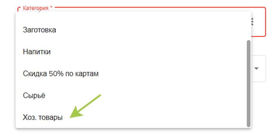После того, как выбрали категорию, она будет указана в строке с категорией.