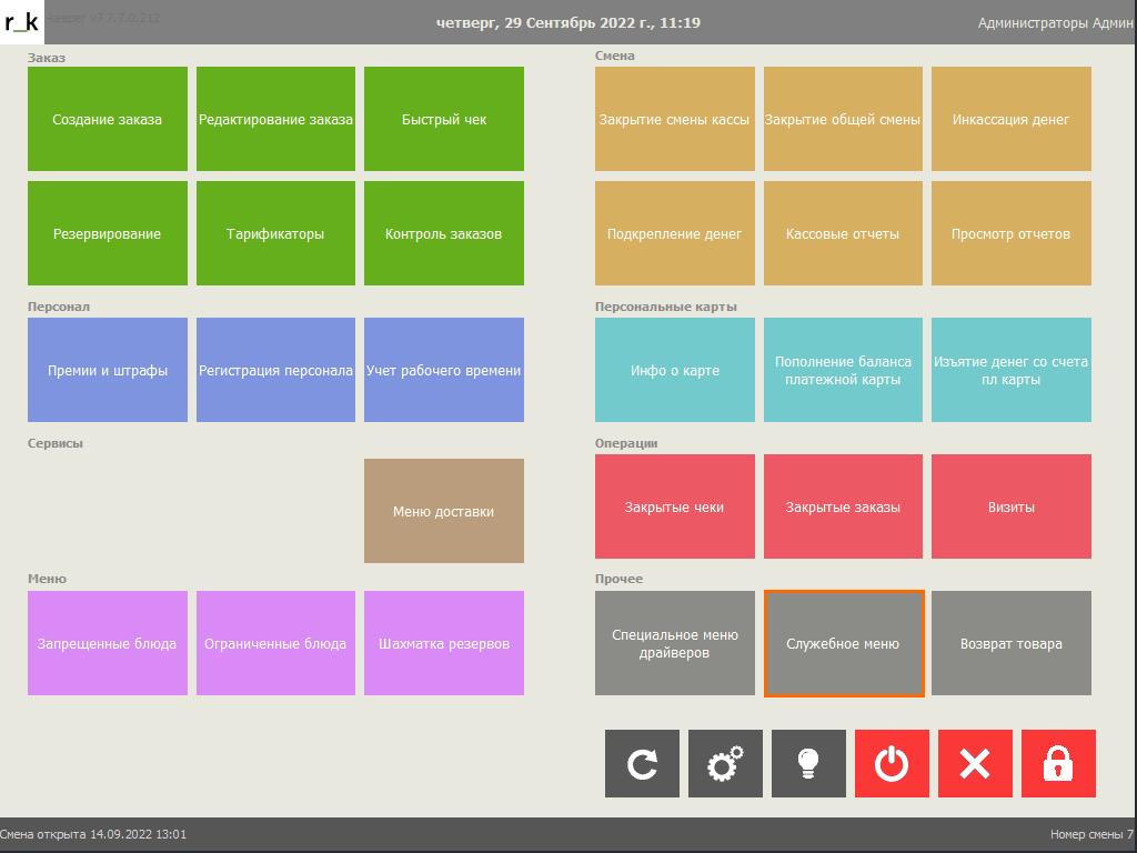 Для формирования чека коррекции на кассовой станции в форме Главное меню, в разделе Прочее выберите пункт Служебное меню
