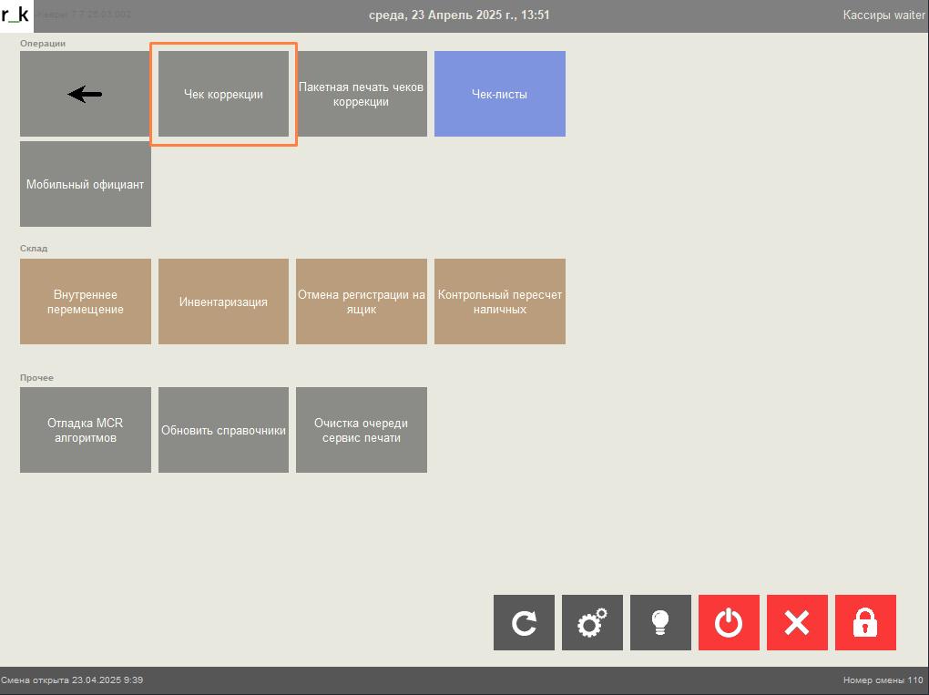В открывшемся списке выберите Чек коррекции