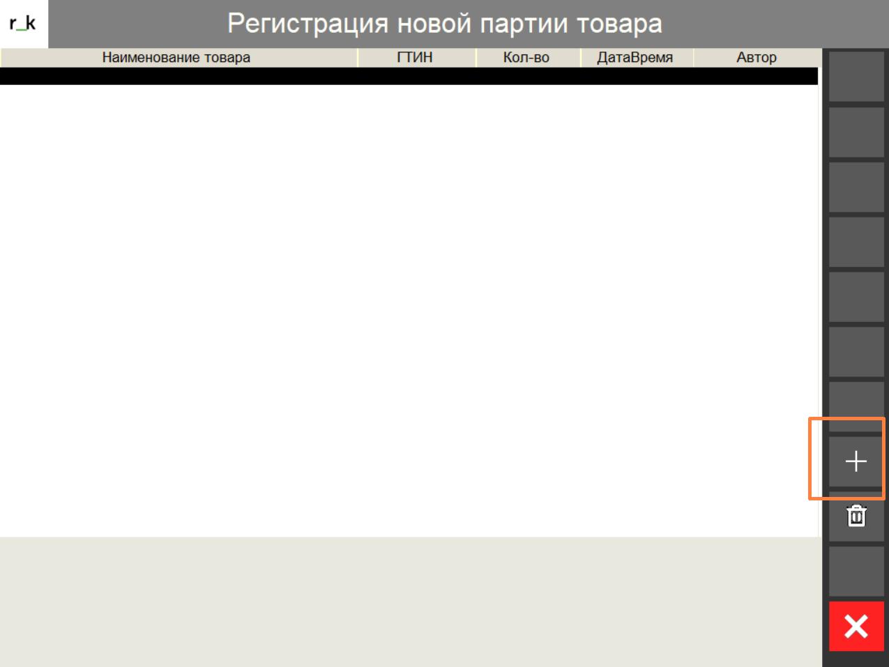 1. Откройте раздел Меню, перейдите в блок Регистрация новой партии товара и нажмите +