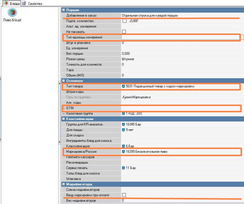 rkeeper | Настройки номенклатуры пива в упаковках | GTIN Партийный учет